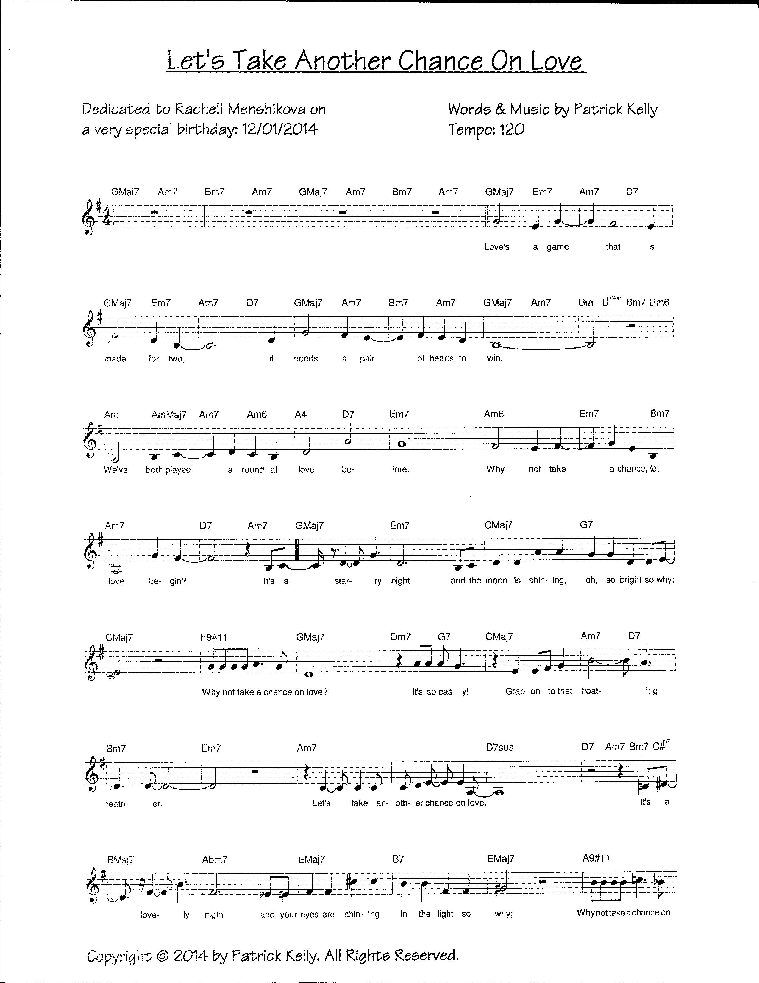 I wrote the song shown at the top of this page, Let's Take Another Chance On Love, for one of those "Zero birthdays" we each have every 10 years. Racheli was overwhelmed with the song and, yes, we "took another chance" on love.